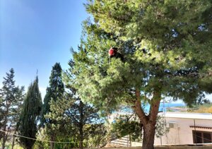 I lavori sono eseguiti generalmente con funi e tecniche di tree climbing, in sicurezza ed utilizzando i DPI obbligatori per legge, il tutto per garantire il massimo della sicurezza nell' effettuare i lavori.